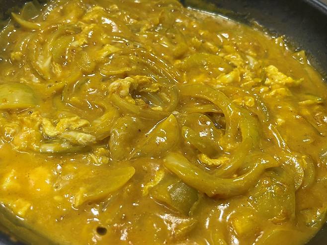 양파, 계란만 넣고도 맛있는 카레가 완성되었습니다. 계란이 들어가 단백질을 보충해 주며 양파의 자연스러운 단맛이 더해져 영양과 풍미가 한층 높아집니다. 이 방법이면 조리시간 10분이면 충분합니다.