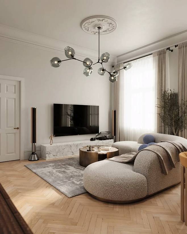작은 거실이라고 주저할 필요는 없습니다. 벽에 가구를 딱 붙이지 않고 살짝 띄우거나, 부드러운 곡선 디자인의 소파를 배치하는 것만으로도 공간이 숨을 쉬기 시작해요. 심플한 커피 테이블과 미니멀한 수납 유닛을 더하면, 답답함 대신 고급스러운 여백이 살아납니다. 작은 변화가 큰 개방감을 만들어내는 포인트죠.