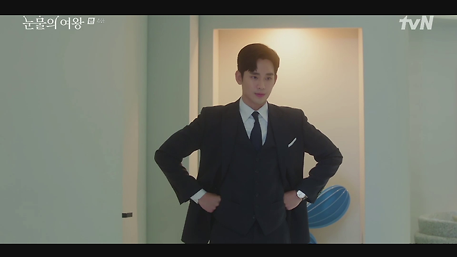 김수현의 클래식한 그레이 수트 셋업에