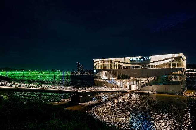 서울웨이브아트센터는 잠원한강공원에 위치한 아트센터로, 유리 건물과 반짝이는 조명이 찰떡같이 어우러지는 공간입니다. 비오는 날 독특한 실내 전시를 관람은 물론 창밖 한강 보며 인생샷도 건질 수 있죠.