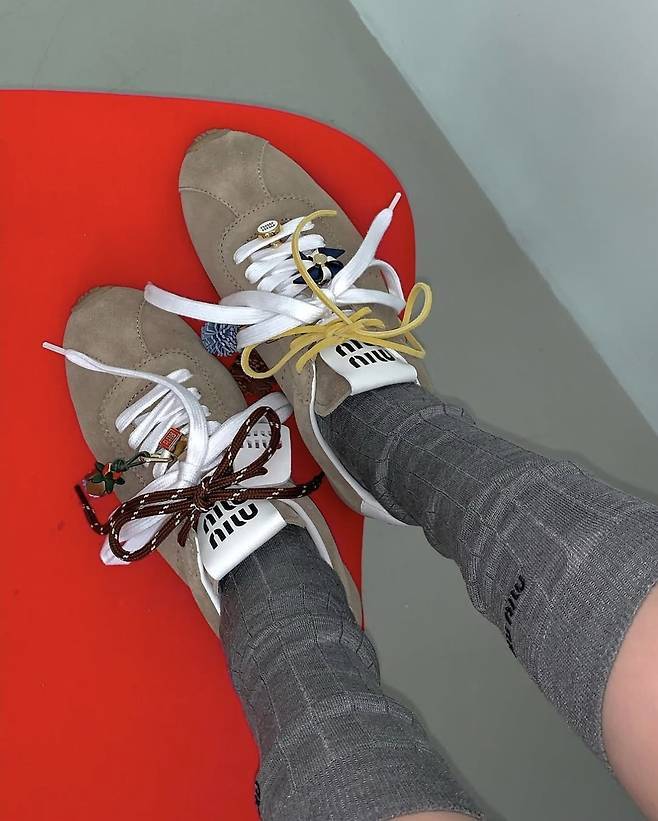 여기에 그레이 롱삭스와 클래식한 무드의 운동화를 매치해 차정원 특유의 꾸안꾸 감성을 살렸고, 미니 핸드백으로 마무리해 귀엽지만 단정한 외출룩을 연출했습니다.