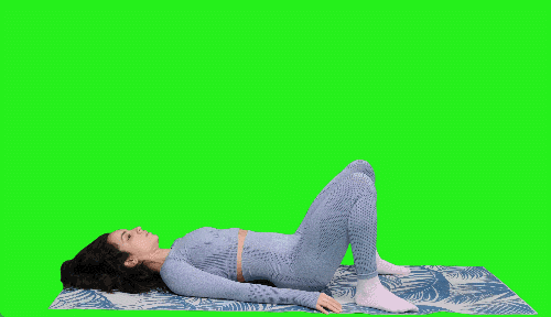 매트에 등을 대고 누운 상태에서 팔을 옆으로 벌려 지지합니다. 무릎을 90도로 구부린 채 다리를 공중에 들어 올리고, 다리를 오른쪽으로 넘겼다가 중앙으로 돌아옵니다. 이어서 왼쪽으로 넘겼다가 돌아오는 동작을 반복합니다.