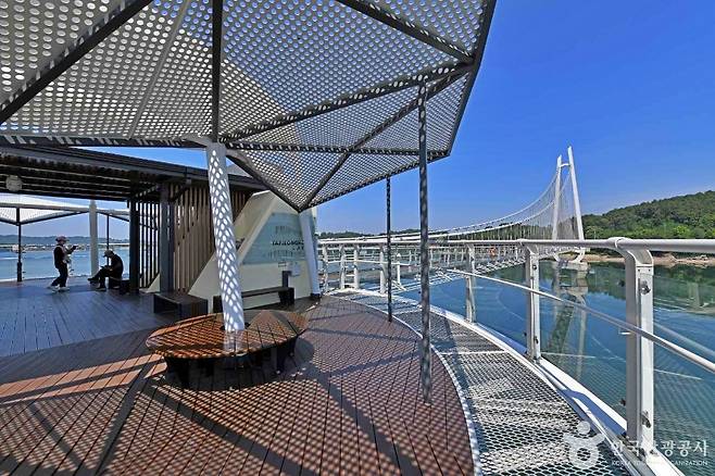 탑정호는 충남에서 두 번째로 넓은 호수로, 대둔산에서 흘러내린 물줄기를 담아낸다. 물빛이 맑아 ‘청정 호수’로 불리며, 출렁다리를 걸을 때마다 발아래로 드러나는 호수 전경이 시원하게 펼쳐진다.