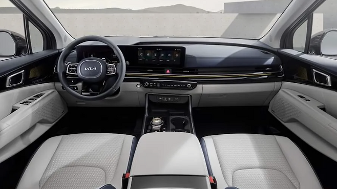 실내 디자인도 개선되었다. 디지털 클러스터의 경우 파노라믹 커브드 디스플레이를 채택했고, 기아의 최신 인포테인먼트 시스템 CCNC가 적용된다. 현세대 자동차 산업의 실내 디자인은 UI 그래픽의 개선이 강조되는 부분이다. 에어벤트와 앰비언트 라인을 수평 형태로 자연스럽게 배치했고, 역시 타 기아 모델과 동일한 전환식 조작계를 배치했다. 때문에 센터페시아는 간소화되고, 센터 콘솔과 분리된다. 센터 콘솔의 경우 배치 자체는 이전 모델과 유사하지만 윤곽선을 크롬라인으로 감싸면서 고급감이 나아졌다.