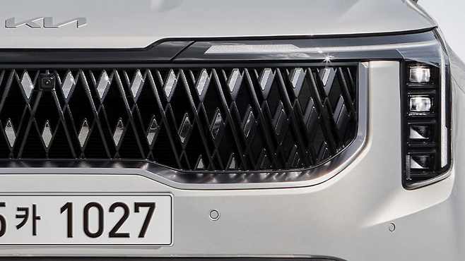 세로형의 헤드램프 디자인은 차체가 높아 보이는 인상을 줄 수 있다. 때문에 앞서 설명했던 디자인의 '대담함'을 묘사하기에 유리하다. 스타 맵 시그니처 라이팅은 'ㄱ'자 형태로 그릴을 파고든다. 기아는 극적인 대비를 통해 차량이 더욱 커 보이고 웅장해 보이는 듯한 인상을 심어주길 원한다. 때문에 DRL 형상이 과하다 싶을 정도로 길고 복잡하게 뻗어 나와 있다. 다행히 부자연스럽지는 않다. 페이스리프트 이전부터 타이거 노즈 그릴 특유의 프레임을 적용했고, 동일한 윤곽을 따라 DRL 라인을 심었을 뿐이다.
