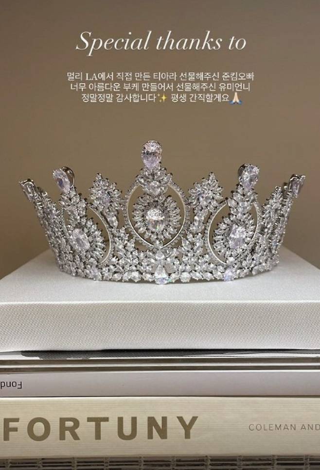 또한 이다인이 결혼식에서 착용한 초대형 티아라도 화제를 모았는데요. 해당 쥬얼리는 미국에서 특별 공수된 것으로 알려졌으며, 이를 본 네티즌들은 “자유의 여신상을 보는 것 같다”, “티아라 밖에 안보인다” 등 다양한 의견을 보내고 있습니다.