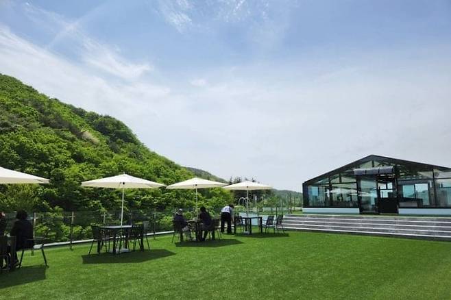 금정산성 일대에는 초록빛 산을 바라보며 여유를 즐길 수 있는 마운틴뷰 카페들이 인기를 끌고 있습니다.