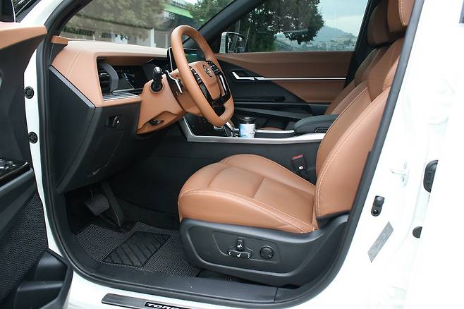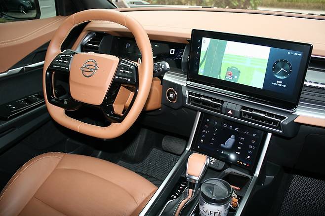 시승을 위해 차에 다가가면 운전자가 가까이 왔다는 것을 차가 인지한다. 1열 도어의 윈도우 프레임 B필러 부분은 용접으로 연결된 모습이 그대로 드러났다. 최근 대부분의 제품이 매끄럽게 처리되는 추세인데 토레스는 아직도 이 방식이다. 게다가 사이드 스텝의 폭이 애매한 사이즈라 발을 편하게 받치기가 쉽지 않다. 개선이 필요한 항목이다. 엔진은 1.5ℓ 가솔린 터보로 최고 170마력, 최대 28.6㎏·m의 토크를 발휘한다. 숫자로는 과거 자연흡기 2.5ℓ 엔진의 출력과 맞먹는다. 4기통 가솔린 엔진 특유의 잔잔함과 정숙성이 편안한 SUV에 한층 더 다가간다.
