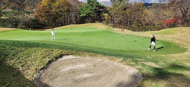 그린은 중/대 크기로 큰 층이 나있는 그린과 언듈레이션도 있습니다.