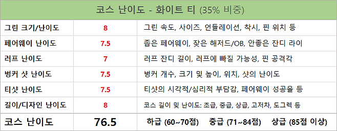 티 박스 상태 8점, 티샷 난이도 7.5 점