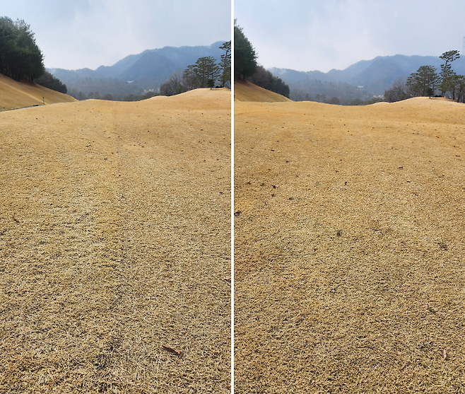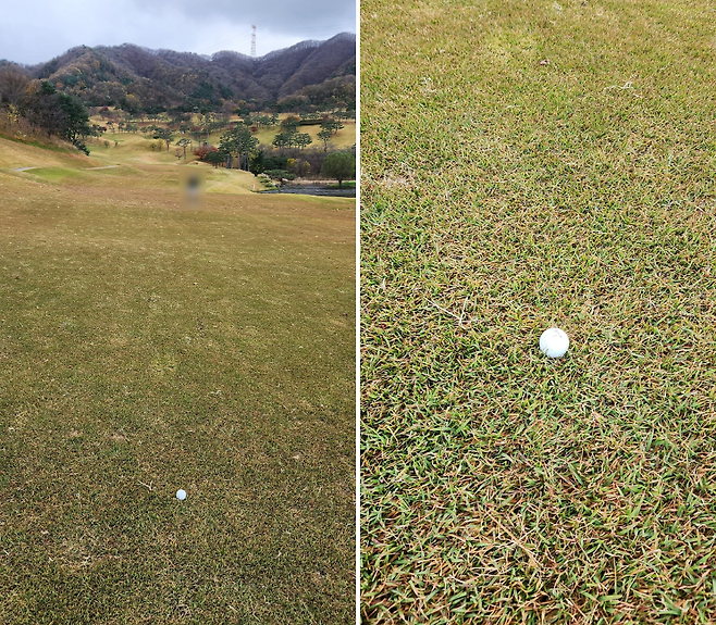 3월의 숨 죽어있는 러프 잔디. 왼쪽 사진 보면 페어웨이와 거의 차이가 없네요.