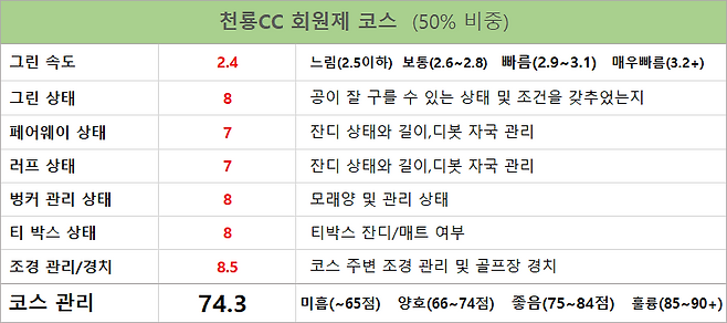 페어웨이 상태 7점, 난이도 7.5 점