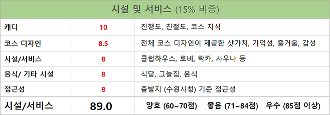 캐디의 코스 설명, 운영 및 친절도 : 10 점