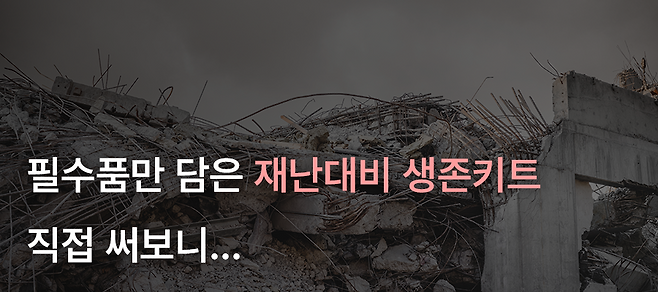 비상용 생활필수품으로는 가급적 조리와 보관이 편한 쌀, 라면, 밀가루, 통조림 등(30일분)과 같은 식량·식수, 식기, 버너, 부탄가스(15개 이상), 담요와 내의, 건전지를 포함한 라디오, 휴대용 전등, 양초, 성냥 등이 꼽힙니다.