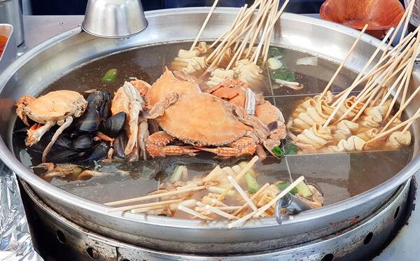 우리나라에서 오뎅이라 부르는 가장 대표적인 먹거리는 떡볶이, 순대, 튀김 등과 함께 판매되는 길거리 음식이다. 꼬치에 어묵을 꽂아서 맑은 국물에 푹 삶은 요리로, 주로 간장에 찍어서 먹는다. 다른 음식과는 다르게 국물은 어묵 꼬치를 먹으면 보통은 공짜로 먹을 수 있으며, 떡볶이나 순대 등 다른 메뉴를 시키면 자연스레 따라붙는 경우도 볼 수 있다. 부산에서 시작된, 매운 국물에 조리한 요리도 요즘은 전국적으로 인기다.