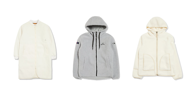 브랜드별 다양한 디자인의 플리스 자켓들이