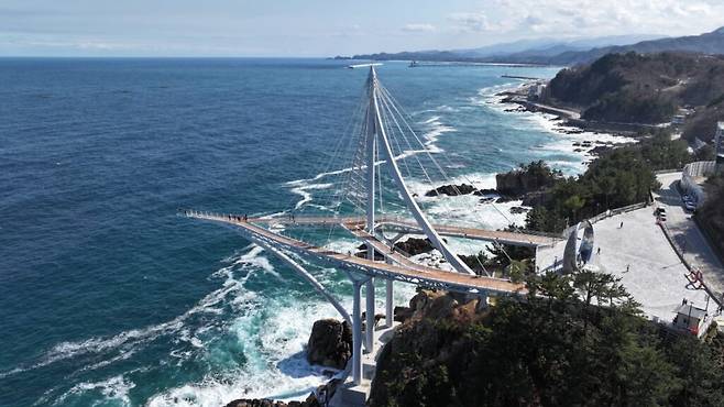 내비게이션에 ‘삼척 해상스카이워크’를 찍고 교동 방향으로 차를 몰다 보면, 익숙한 동해안 드라이브 코스 위에 낯선 실루엣이 수평선을 배경으로 떠오른다.