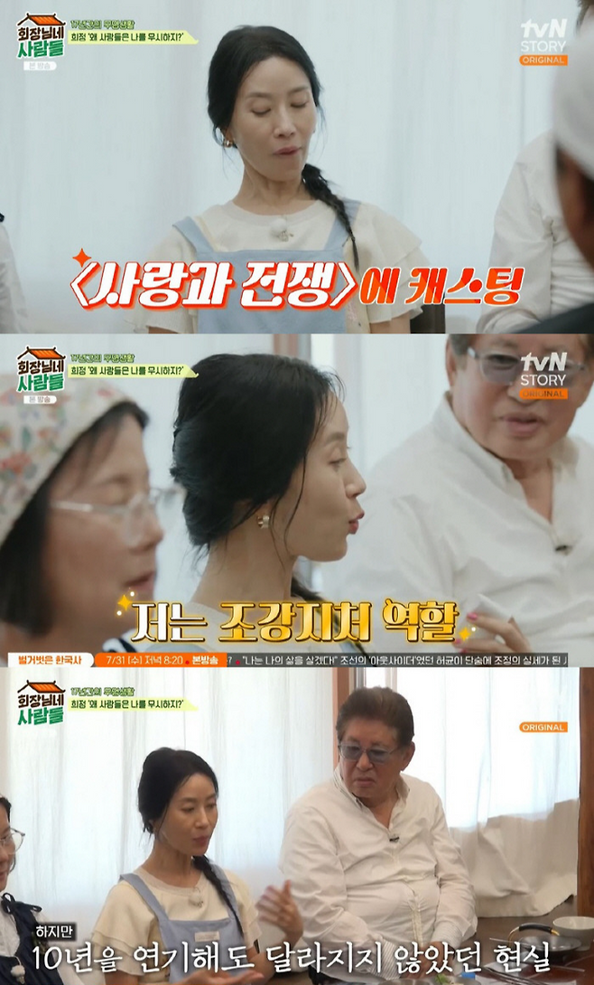 방송된 tvN 스토리 '회장님네 사람들'에서 김희정은 '사랑과 전쟁' 출연으로 주변에 당했던 무시를 털어놨습니다. 김희정은 "제가 SBS에서만 17년을 일했다. 그 무렵 KBS2에서 '사랑과 전쟁'이 있었는데 난 저런 것도 안 부르나 생각했다. 나도 저기 나갔으면 좋겠는데 안 들어오네 싶었다. 어느 날 캐스팅이 돼서 시작하게 됐다"고 밝혔습니다.