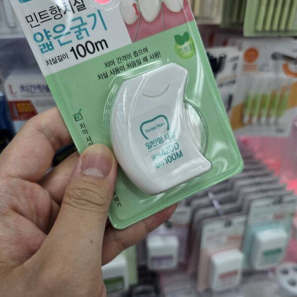 이 치실은 튼튼해 보이지만 코팅이 안 되어 있는 제품이 많아 사용 중 쉽게 끊어지거나 잇몸을 자극할 수 있습니다.