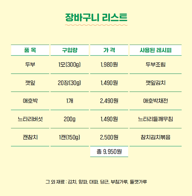 오늘 소개해 드린 레시피처럼 특별한 식재료가 아니어도 든든한 한 끼 밥상을 차릴 수 있습니다. 만원부터 4만원까지 예산별로 식단표를 짜고 싶다면 지금 바로 「일주일 식비 절약 반찬 만들기」 를 서점에서 만나보세요!