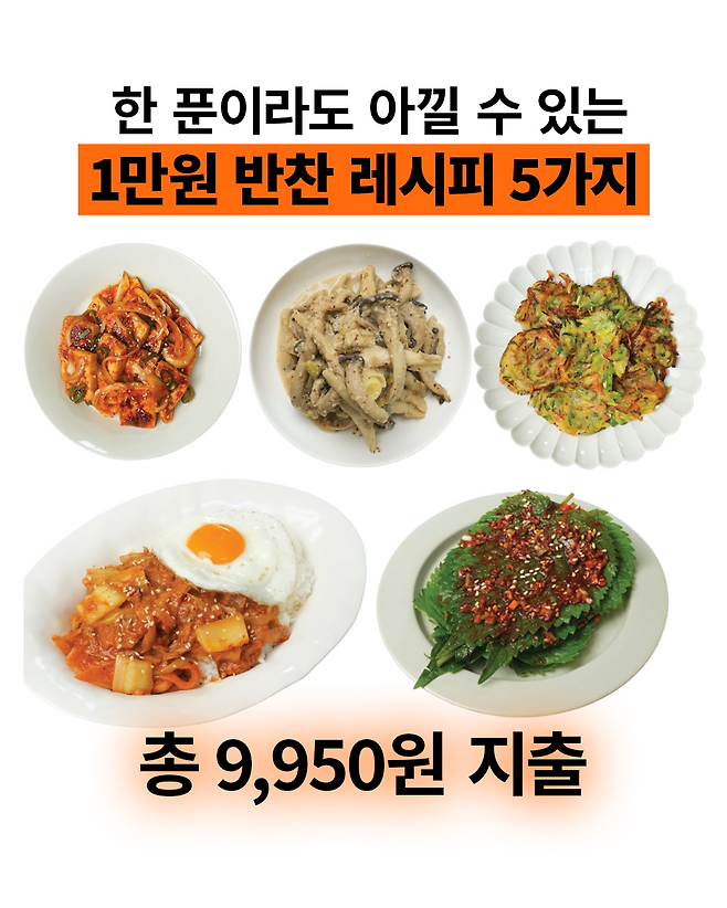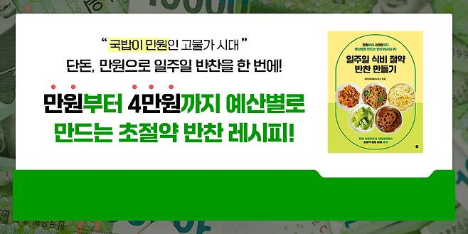 오늘 소개해 드린 레시피처럼 특별한 식재료가 아니어도 든든한 한 끼 밥상을 차릴 수 있습니다. 만원부터 4만원까지 예산별로 식단표를 짜고 싶다면 지금 바로 「일주일 식비 절약 반찬 만들기」 를 서점에서 만나보세요!