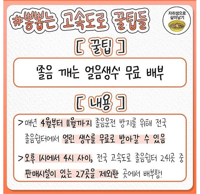 껌, 물, 시원한 에어컨, 졸음쉼터 활용