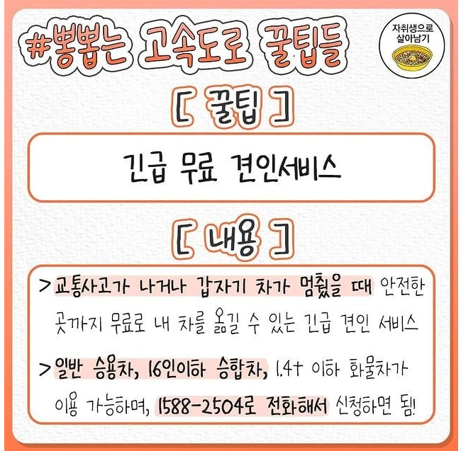 긴급 연락: 1588-2504 (한국도로공사 긴급견인)