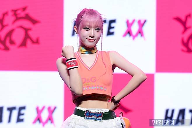 최예나는 27일 오후 서울 용산구 블루스퀘어 마스터카드홀에서 두 번째 싱글 앨범 '헤이트 엑스엑스(HATE XX)' 발매 기념 미디어 쇼케이스를 개최했다.