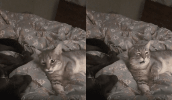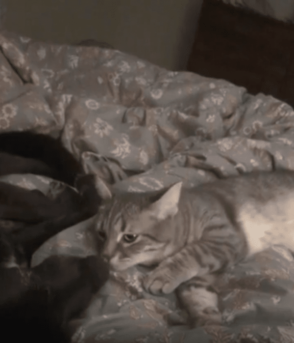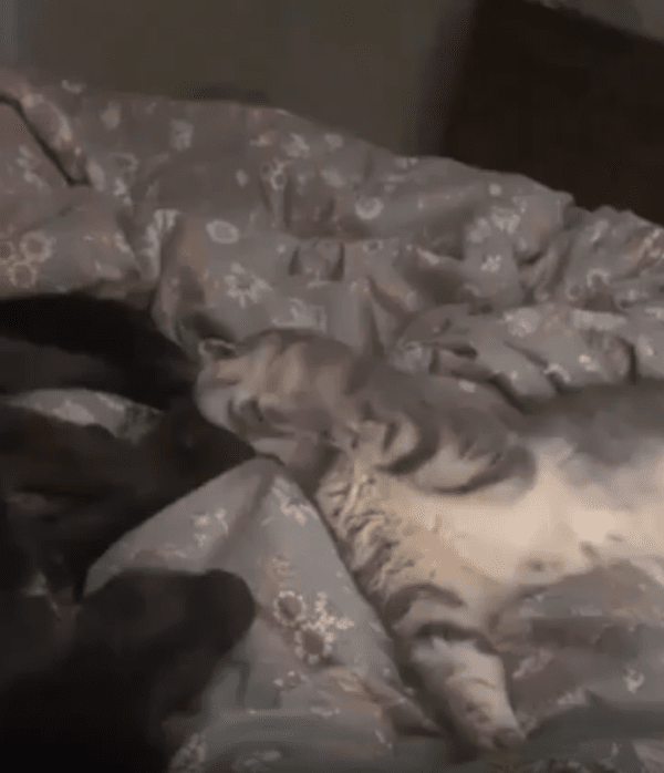 고양이와 강아지가 나란히 누워 있습니다. 따뜻한 분위기 속에서 두 동물은 편안하게 쉬고 있었죠. 하지만 이 조용한 순간이 오래가지 않았습니다. 고양이가 갑자기 고개를 돌려 옆에 있는 강아지의 얼굴을 바라보더니, 천천히 코를 가져가 냄새를 맡기 시작했습니다.