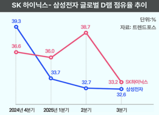 33년 만에 SK하이닉스에 선두를 내준지난 1분기 이후 9개월 만이죠.