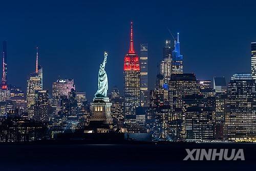 TO GO WITH "NYC's Empire State Building shines red for Chinese Lunar New Year" (Photo by Winston Zhou/Xinhua)