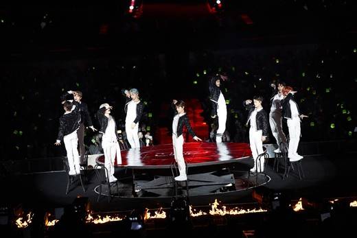 그러면서 "이수만 선생님, 뛰실 준비되셨느냐. 이수만 선생님도 준비되셨느냐"며 "길게 멘트 하는 두 번째 이유가 이제부터 엄청 뛸 거라 그렇다. 여러분들 다 준비되셨느냐. '종이비행기 (Paper Plane)' 뛸 때보다 2, 3배 더 뛰셔야 한다"고 강조했다.