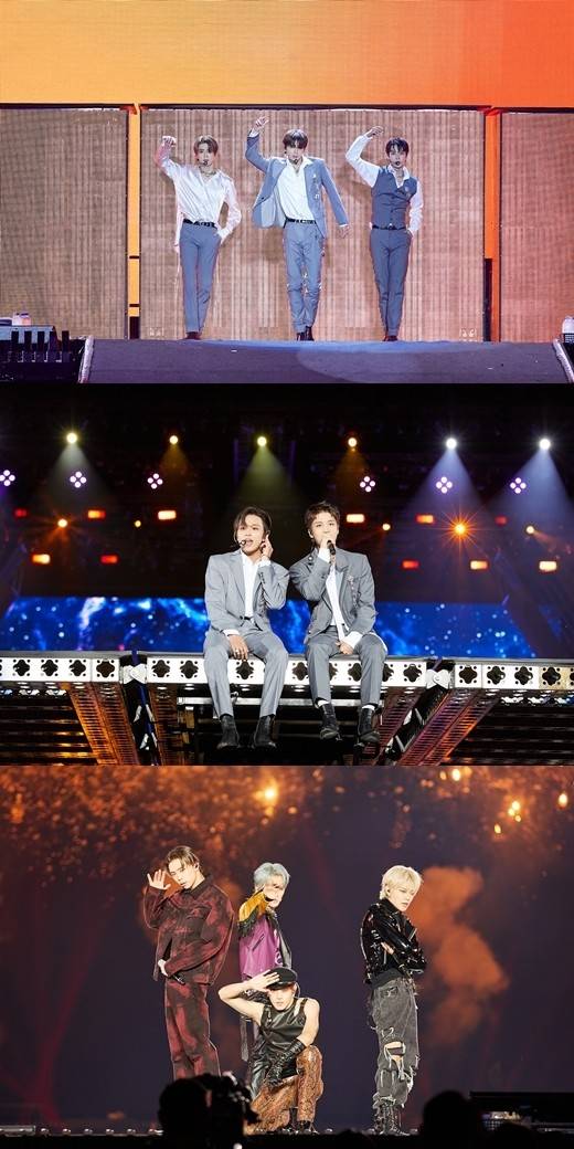 여전히 눈가를 촉촉이 적신 도영은 "이 주경기장 공연장에 서면서 내가 생각하고 또 하고 싶었던 말이 있다. 우리가 7년 차다. 7년의 결실이 이곳에서 콘서트를 하는 거다'라는 생각이 들었다. 그런데 또 하나 이야기하고 싶은 건 우리가 앞으로 남은 공연장 중에서 이곳이 가장 큰 공연장이 아니었으면 좋겠다는 생각도 들었다. 더 큰 곳에서 많은 팬 분하고 함께하고 있었으면 좋겠다. 그리고 음악이 주는 힘은 대단하지 않으냐. 음악 덕분에 여러분이랑 만날 수 있었으니까 음악한테도 고맙다"며 소감을 전했다.