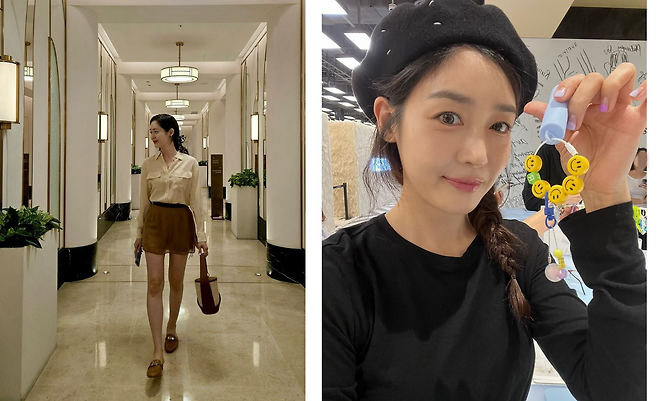 사진 속 성유리는 흰색 블라우스와 아이보리 미니스커트를 입고 단아한 모습을 선보였으며,아이보리 블라우스와 베이지톤의 미니스커트를 입고 로퍼를 신어 긴 기럭지를 자랑했다.