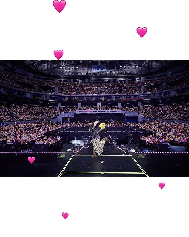 블랙 레이어드 탑에 크로셰 디테일을 더해 강렬하면서도 텍스처가 살아 있고, 진한 레드 립과 붉은 뺨으로 무대 메이크업까지 완벽하게 소화했죠.