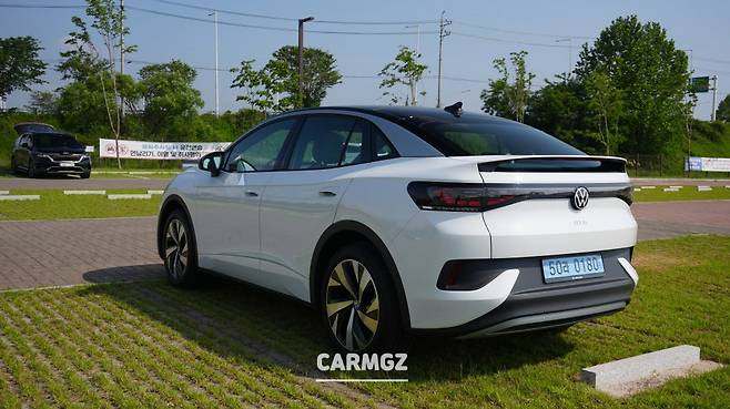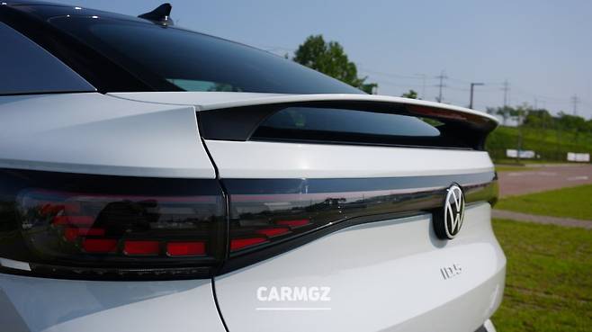이런 배경처럼, ID.5의 디자인은 ID.4와 유사하다. 큰 틀에선 동일하되, 세부적인 부분에서의 차이가 있을 뿐이다. 전후면 범퍼 하단의 스포티한 라인, 매끄럽게 내려간 쿠페형 루프라인과 스포일러는 ID.4와의 차이를 강조하지만, 그 뿐이다. 쾌적한 실내 공간을 확보하기 위해 뒤로 최대한 당겨온 루프 라인의 끝에서 쿠페형으로 떨어지다보니 뒷 라인의 각도는 어중간하다.