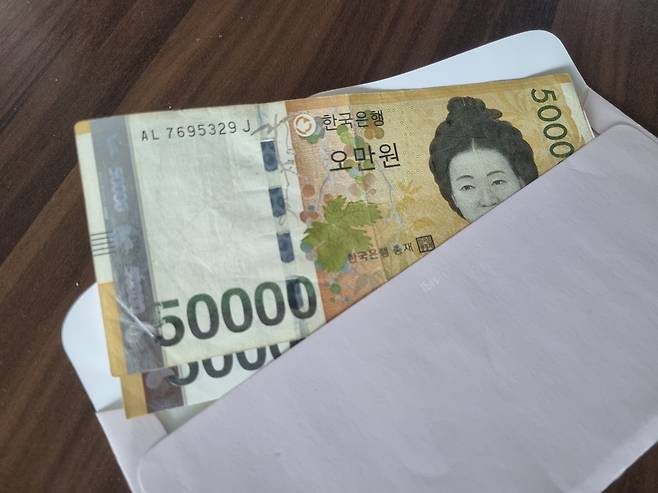 | ▲ 윗집 젊은 부부가 주고 갔다는 10만 원. |