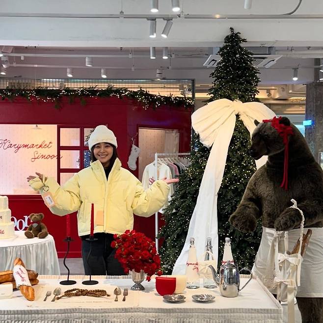 특히 니트 후드 디자인은 귀여운 매력을 배가시키며 겨울철 감각적인 데일리룩으로 손색이 없었습니다.