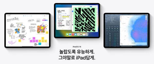 iPadOS 16은 메시지를 통해 공동 작업하는 새로운 방법, Mail에 대한 대규모 업데이트, iCloud 공유 사진 보관함, Safari의 암호 및 새로운 공동 작업 기능, 날씨 앱, 참조 모드 및 디스플레이 확대/축소를 포함한 프로 기능, 그리고 스테이지 매니저를 통한 완전히 새로운 멀티태스킹 경험을 제공한다.