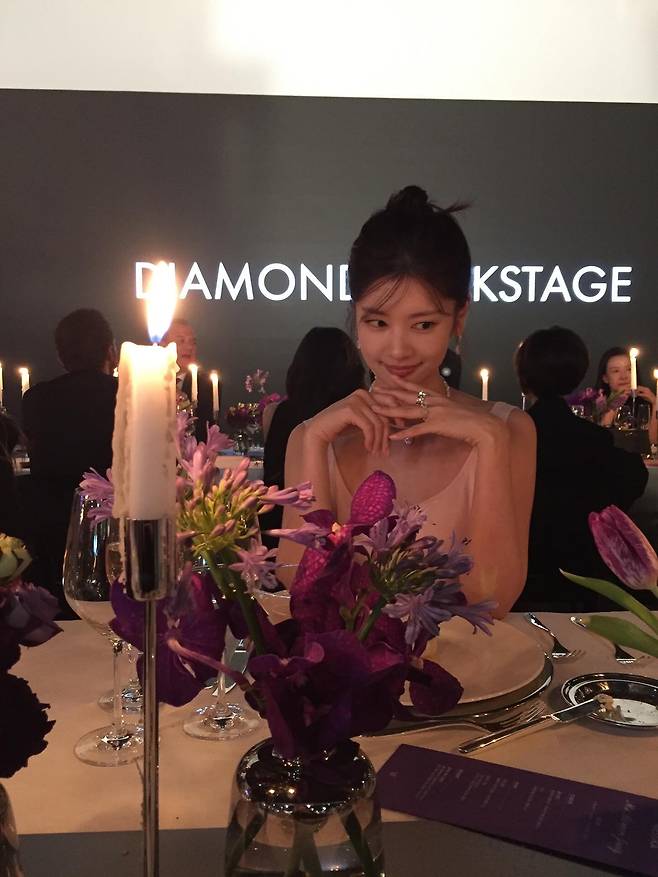 특히 반지와 귀걸이까지 풀 셋으로 매치된 주얼리는 행사장 조명 아래서 반짝이며 얼굴을 더욱 또렷하게 밝혀줬어요.