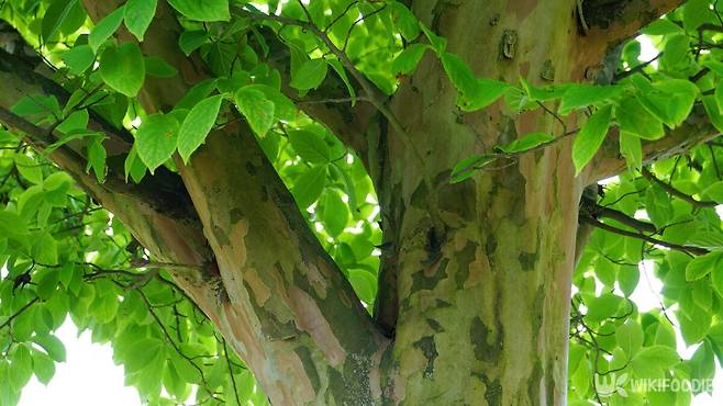 줄기의 껍질은 조각조각 벗겨져 얼룩무늬를 만들며, 나무결이 비단처럼 곱고 매끈해 '비단나무'라는 이름으로도 불린다. 나무껍질은 붉은빛에 회색 반점을 띠고 있는데, 이 모습이 배롱나무와 쉽게 구별이 안 될 정도로 흡사하다.