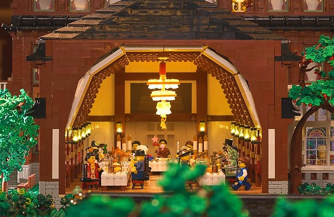 부산 해운대에 위치한 그랜드 조선 부산의 로비에 들어서면, 시간 여행을 떠난 듯한 기분이 들게 됩니다. 이번 전시에서는 조선호텔의 개관 당시 모습을 사실감 있게 표현한 거대한 레고 디오라마가 관람객을 맞이하고 있어요. 특히, 당시 호텔 외관의 웅장함과 아름다운 로즈가든의 모습을 섬세하게 담아냈답니다. 건축 도면과 옛 사진 자료를 기반으로, 김승유 작가는 10만 개가 넘는 레고 브릭을 이용해 그 시절의 럭셔리함을 고스란히 재현했어요.