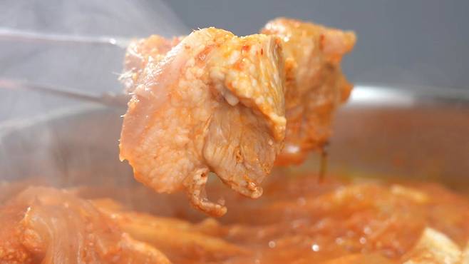 게다가 멸치칼국수면 스프를 넣어 쉽게 육수를 내고, 두부와 설탕을 더해 한층 부드럽고 달콤한 맛을 완성했다. 돼지고기와 김치, 그리고 두부의 조화가 어우러져, 가족 모두가 만족할 수 있는 한 끼가 된다.