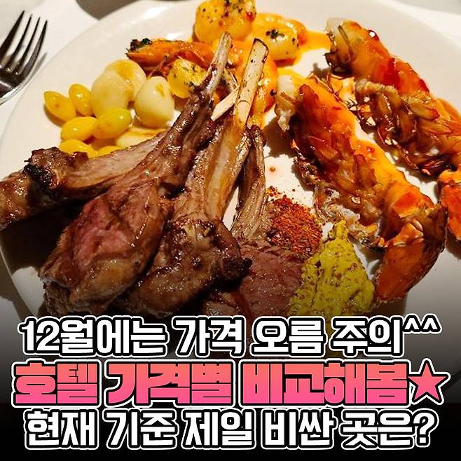 12월 연말 시즌, 호텔 뷔페의 가격이 전체적으로 올라가는데 이곳 역시 가격 인상이 적용되겠죠? 과연 어느 정도의 가격대일지 벌써부터 심장이 윽.. 떨려오네요.