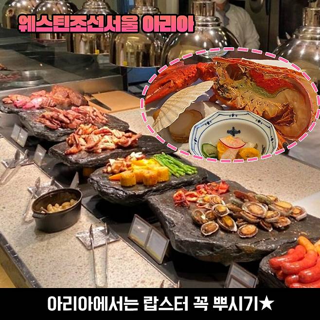 단, 이곳의 대표 메뉴 중 하나는 대게찜이었는데요. 지난 2월 이후로 대게 메뉴가 사라졌다는 슬픈 소식이..! 그.러.나 아리아의 치트키는 다름 아닌 랍스터라는 사실. 신선함은 말할 것도 없죠? 양껏 먹을 수 있답니다. ♡