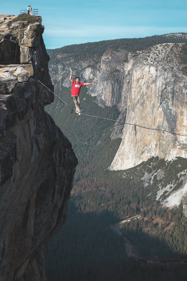외줄을 탄다는 건 한 쪽으로 너무 기울면 결국 넘어지게 되는 위태위태한 상황이잖아? 그래서 균형을 유지하는 일이 중요한, 아슬아슬한 상황을 설명하기 위해 이 표현을 쓰곤 해.
