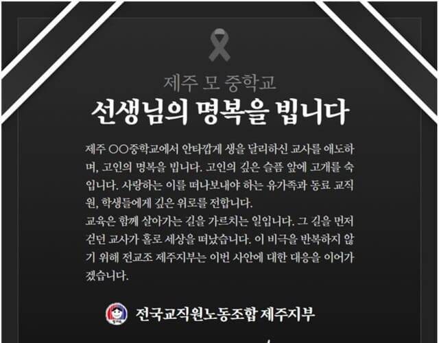 제주 중학교 교사 사망 학교 어디?