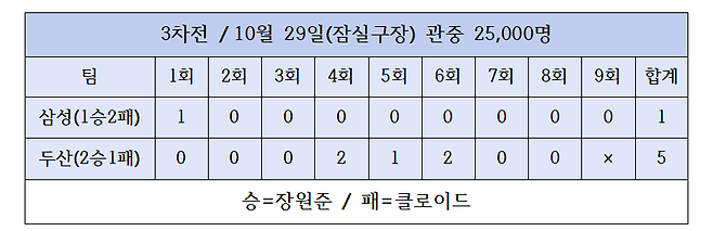 스코어는 5-1로 벌어졌고, 3차전 승부는 이대로 끝났다.