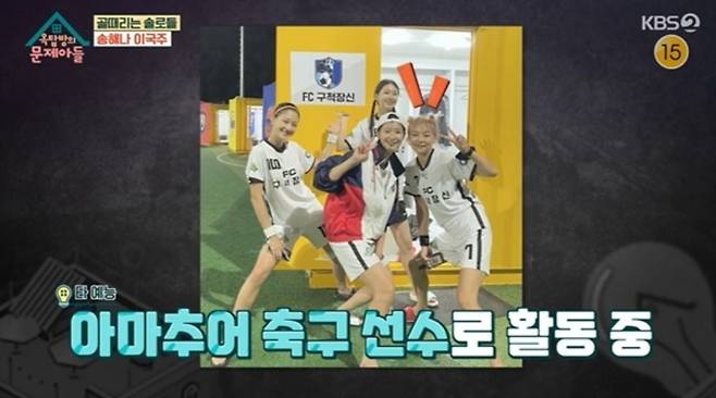 송해나는 “축구팀 주장 이현이 언니가 시즌 중에 절대 남자 만날 생각하지 말라더라”라며 이현이가 ‘연애 금지령’을 내렸다고 폭로해 웃음을 자아냈는데요. 이어 그는 “축구 연습 때문에 남자친구를 자주 못 만나서 헤어지게 됐다. 이별 후 화난 감정을 축구로 풀다 보니 실력이 확 늘었다”고 축구 실력이 일취월장하게 된 비하인드 스토리를 설명해 웃음을 안겼습니다.