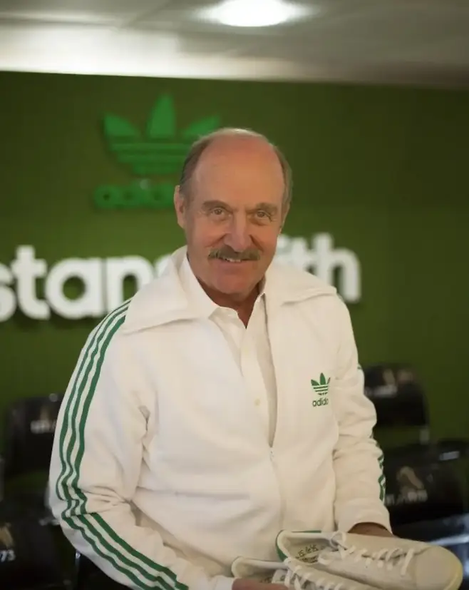 스탠스미스를 들고 있는 스탠리 스미스. 텅에 새겨진 얼굴의 주인공.